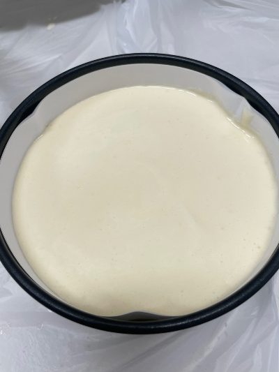 높은 곳에서 반죽을 넣어주세요. 그래야 큰 기포가 안 생긴다고 하네요ㅎㅎ