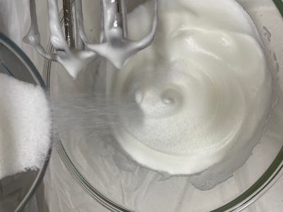 이 정도 휘핑이 되었다면 준비된 설탕을 꺼내줍니다.