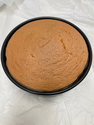 완성된 제누와즈를 바닥에 두 번 정도치고 빼줍니다.
