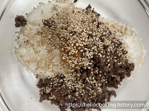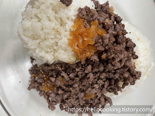 유부초밥만 만들어도 맛있지만 소고기 다짐육을 볶아 넣으면 더 맛있더라고요.