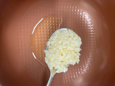 식용유를 넣고 다진 마늘을 넣고 달달 볶아주세요.
