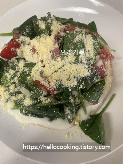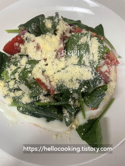 그렇다고 너무 묵직하게 먹긴 싫고 간편하게 먹고 싶었던 와중에 최화정 님께서 시금치 피자를 만드시는 걸 보았어요.
