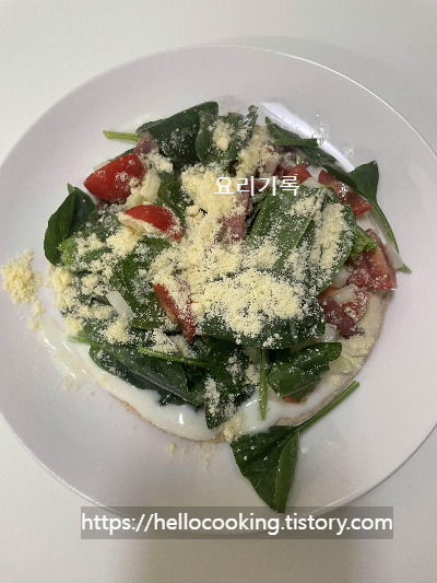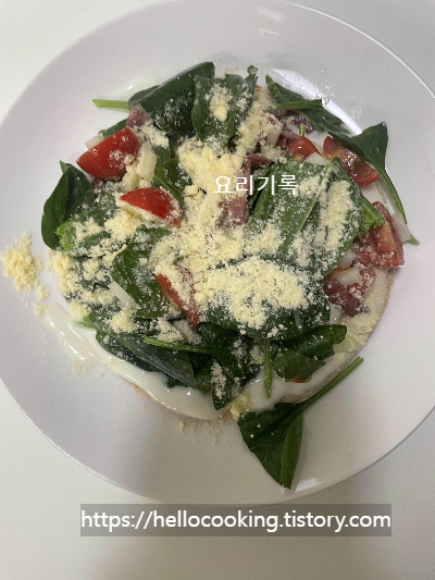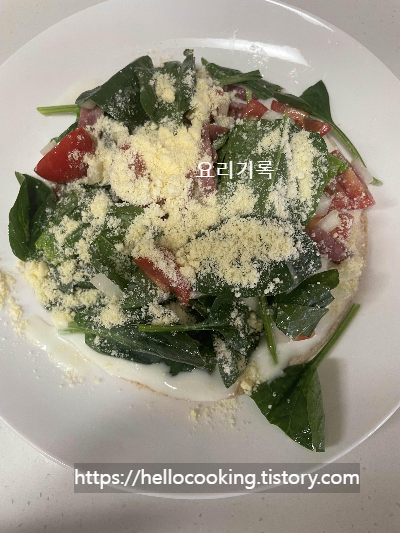 최화정 님은 파마산치즈를 갈아서 넣어주셨는데 저는 없어서 그냥 파마산치즈 가루를 듬뿍 뿌려주었습니다.