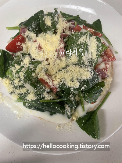 오늘은 시금치 피자를 만들어 보려고 해요.