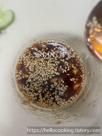 간장 1.5T, 알룰로스 0.5T, 식초 1T, 들기름 2T, 다진마늘 0.5T, 깨