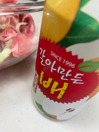 이제 배음료(갈아 만든 배)를 넣어줄 겁니다.