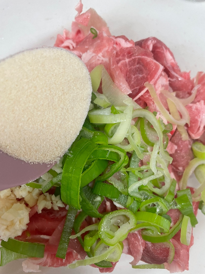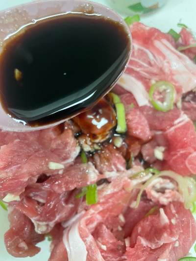 단맛이 어느 정도 고기에 스며들었다고 생각되면 진간장 2.5T을 넣어줍니다.