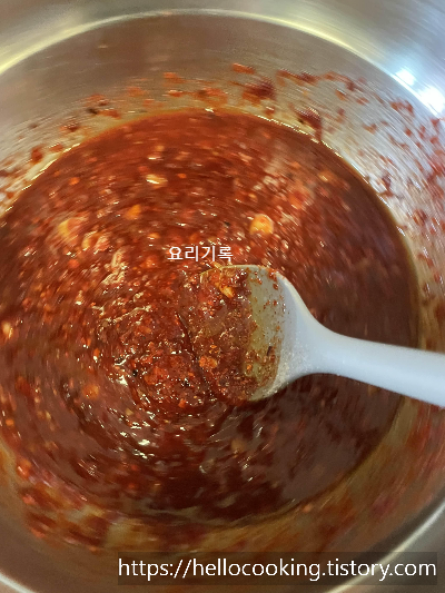 고추장 듬뿍 1T,고춧가루 4T,미림 1T,진간장 2T,매실청 2T,설탕 1T,알룰로스 2T,다진마늘 듬뿍 1T,후춧가루 0.5T을 넣고 양념장을 만들어주세요.
