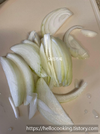그 사이 양파를 썰어주세요.