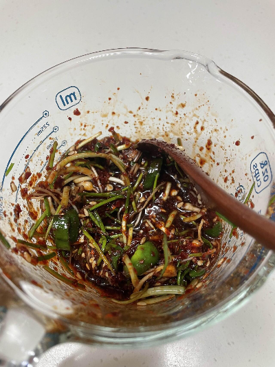 달래랑 , 청양고추를 송송 썰어서 양념장과 함께 넣어줍니다.