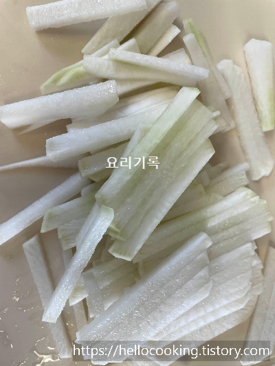 무를 채 썰어줄게요.