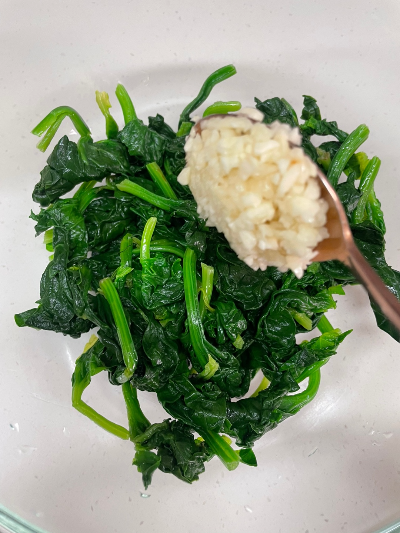 볼에 시금치를 잘 풀듯이 담아줍니다.