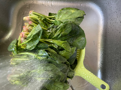 시금치를 다듬고 깨끗하게 씻어주세요.