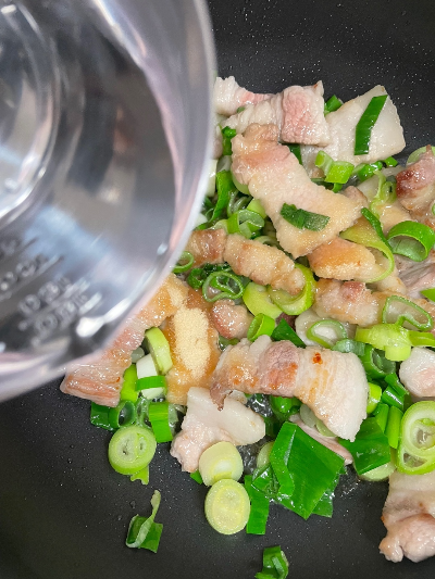 삼겹살이 어느 정도 익었다면 준비된 파를 넣고 볶아줍니다.