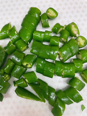 꽈리고추 20개를 적당한 크기로 썰어 줍니다.