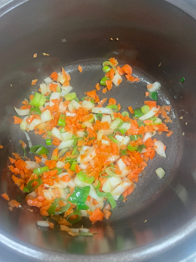 부추를 뺀 나머지 야채들을 넣고 잘 볶아줍니다.