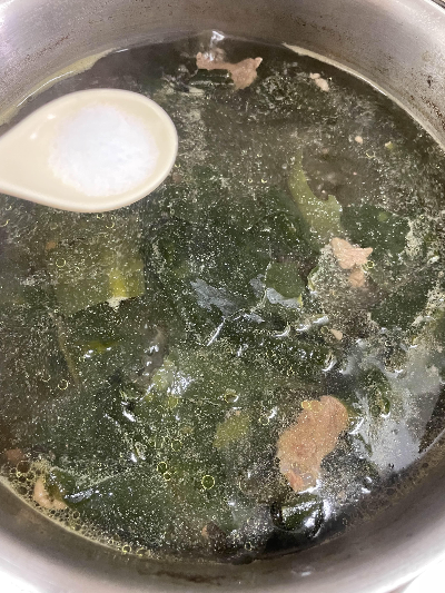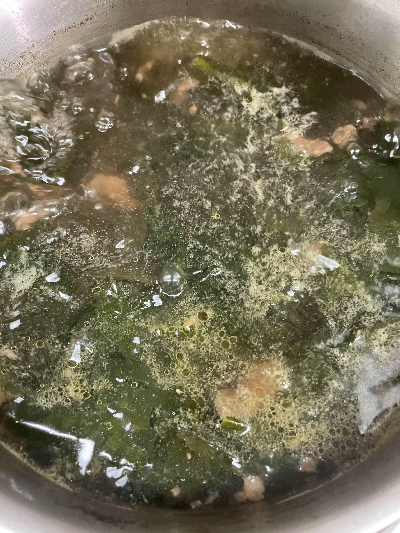 팔팔 잘 끓고 있는 미역국. 이제 끝입니다.