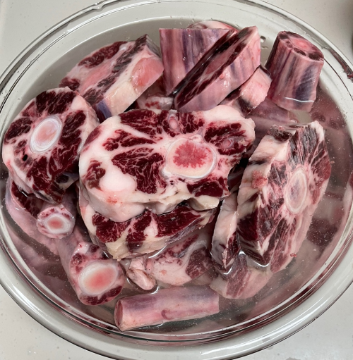 소꼬리를 깨끗하게 씻은 후 핏물을 빼줍니다(약 2시간)