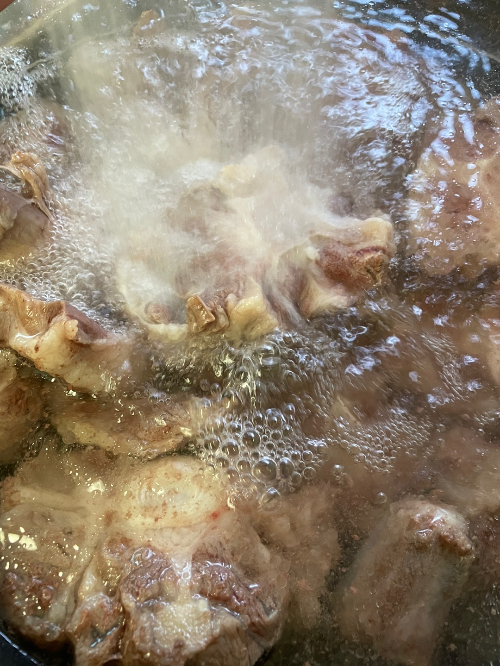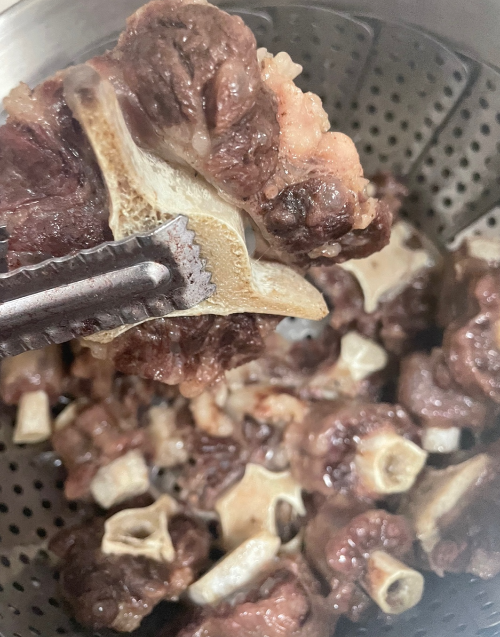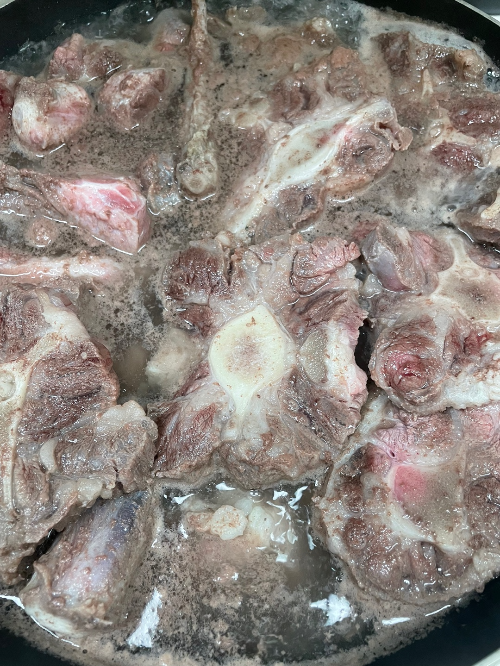 핏물을 뺀 소꼬리를 끓는 물에 3~5분 정도 데쳐주세요.