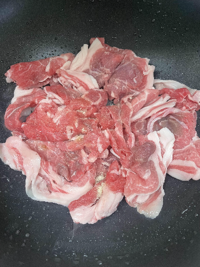 식용유를 두른 팬에 고기를 올리고 설탕을 1T 뿌려서 잘 볶아줍니다.
