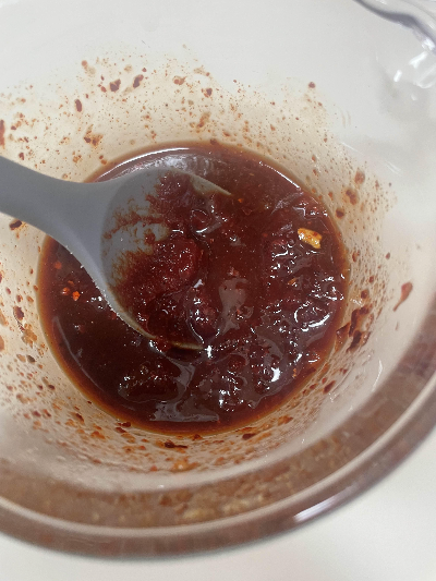 고추장 1T,고춧가루 2T,진간장 2T,매실청 1T,올리고당 1T,다진마늘 듬뿍 1T