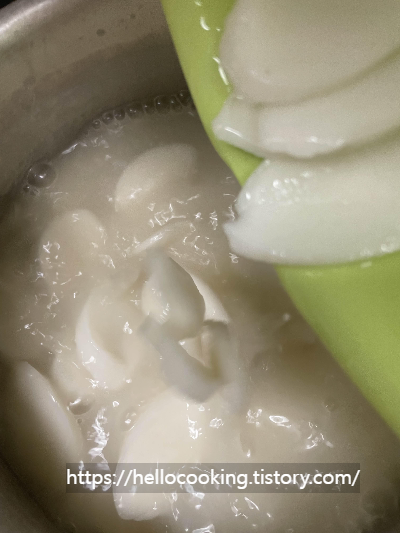 떡국떡을 물에 불려주세요.
