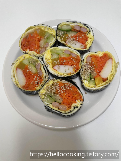 한번씩 김밥 먹고 싶은데 밥 때문에 부담되시는 분들은 이 키토김밥을 만들면 정말 맛있다고 하실 거 같네요.