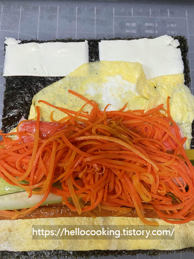 도마 위 김을 깔아주세요.