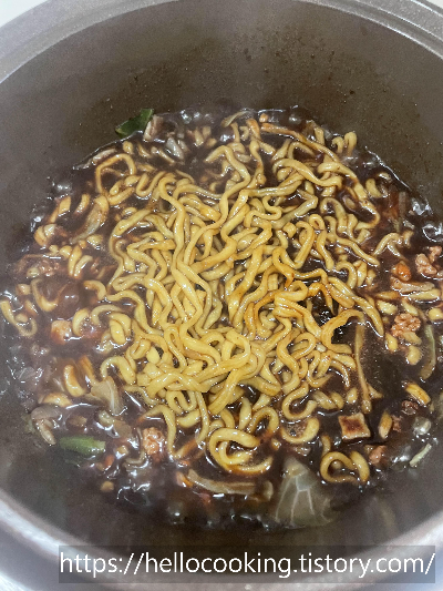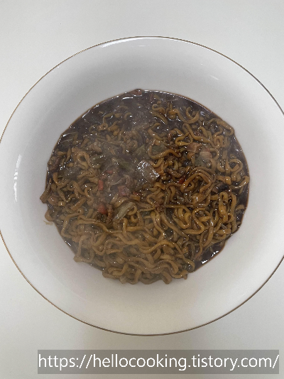하다가 짜장라면을 끓여서 먹었습니다.
